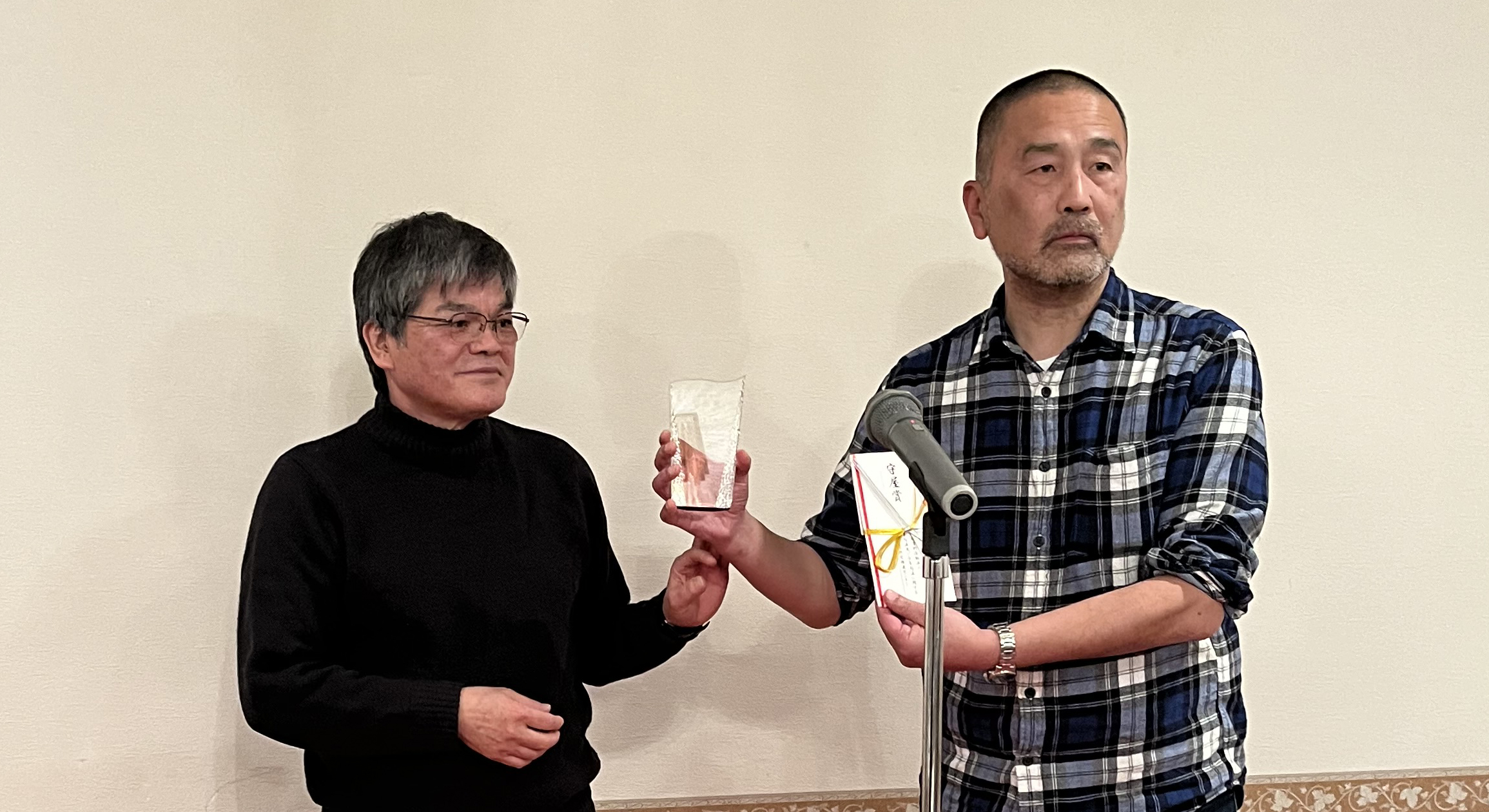 なお、前川氏は体調不良で表彰式をご欠席のため、同年12月19日に行われた無罪確定を祝う会において正賞の楯と副賞を贈呈いたしました。